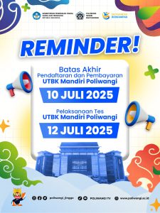 Halo #SobatBranggo! Panitia Penerimaan Mahasiswa Baru Politeknik Negeri Banyuwangi Tahun 2025 menyampaikan informasi penting terkait pelaksanaan UTBK-Mandiri (Ujian Tulis Berbasis…