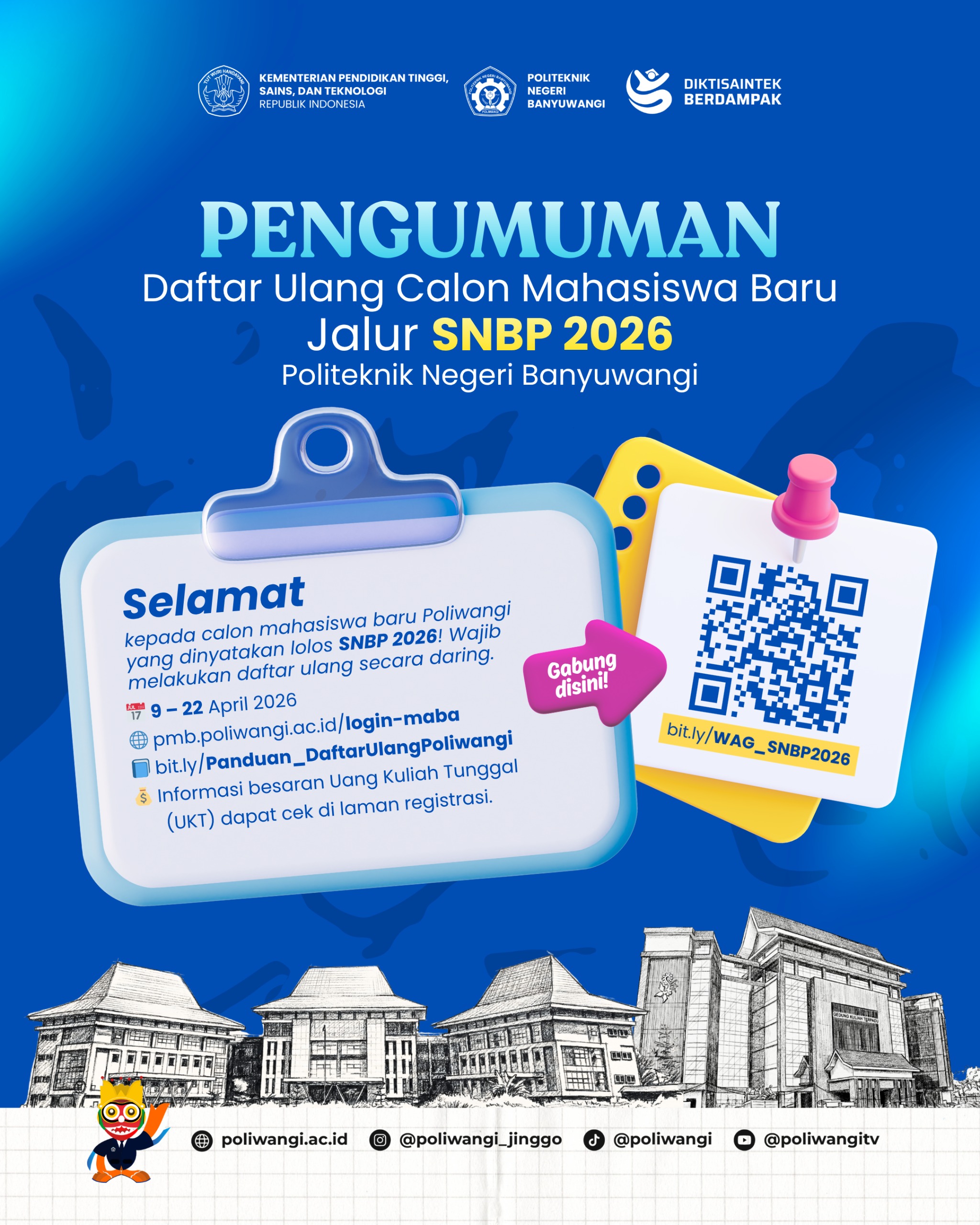 Politeknik Negeri Banyuwangi secara resmi mengumumkan perpanjangan waktu pelaksanaan daftar ulang bagi calon mahasiswa baru yang dinyatakan lolos melalui jalur…