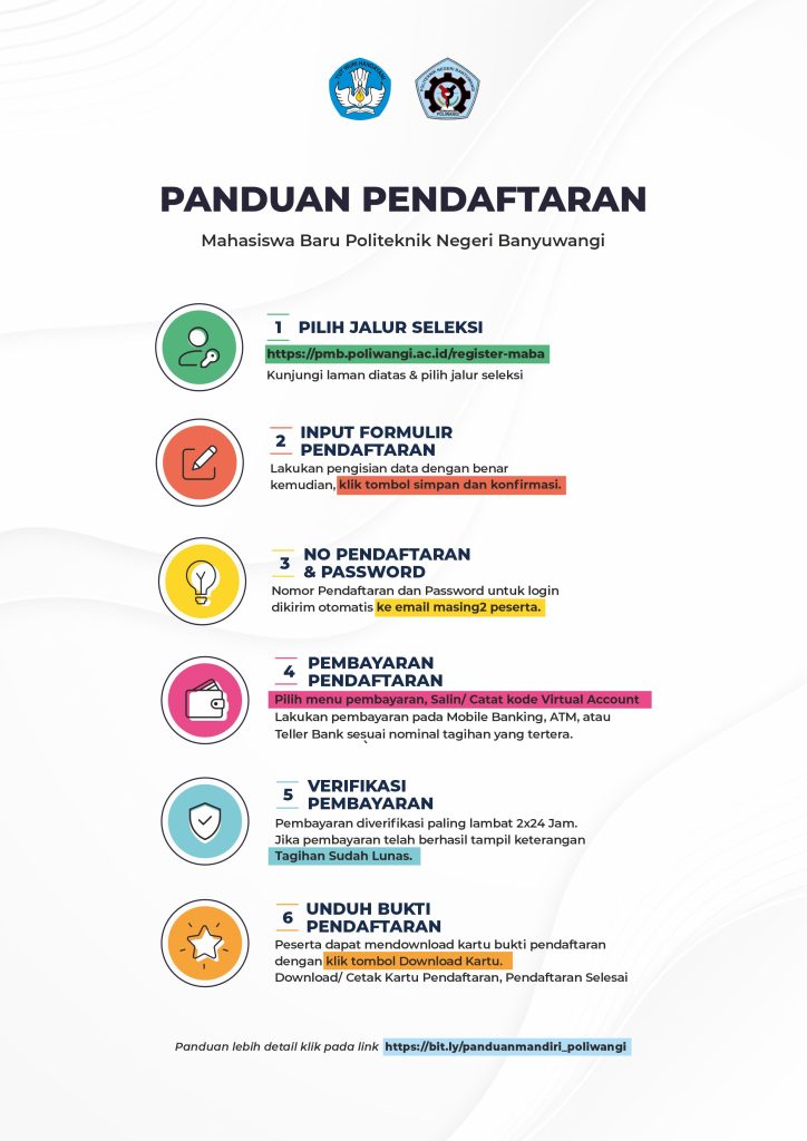 Untuk update informasi terkait pendaftaran jalur Mandiri (S2MB, Konsorsium, Mandiri Poliwangi) bisa bergabung dalam Whatsapp Grup berikut https://bit.ly/WAG_MandiriPoliwangi2025